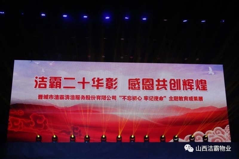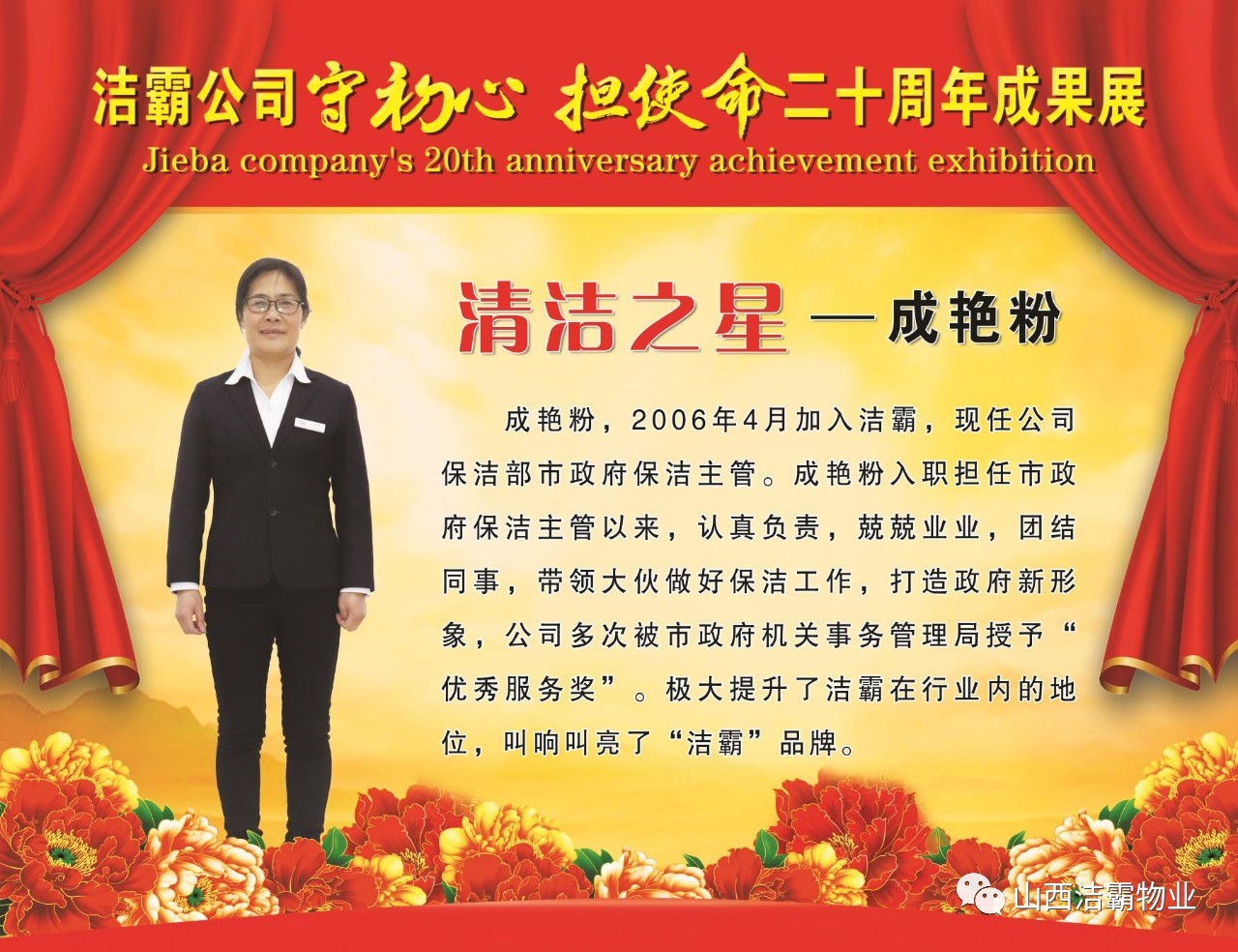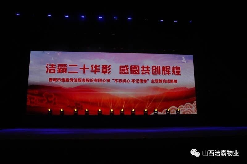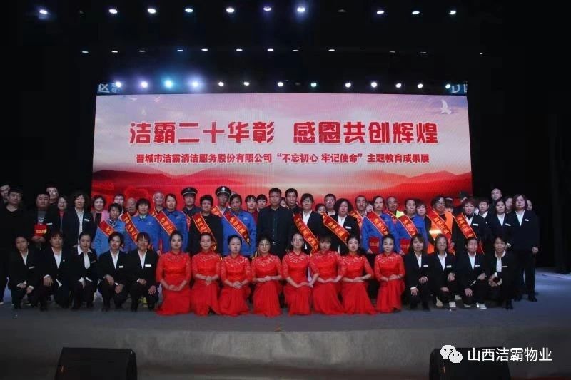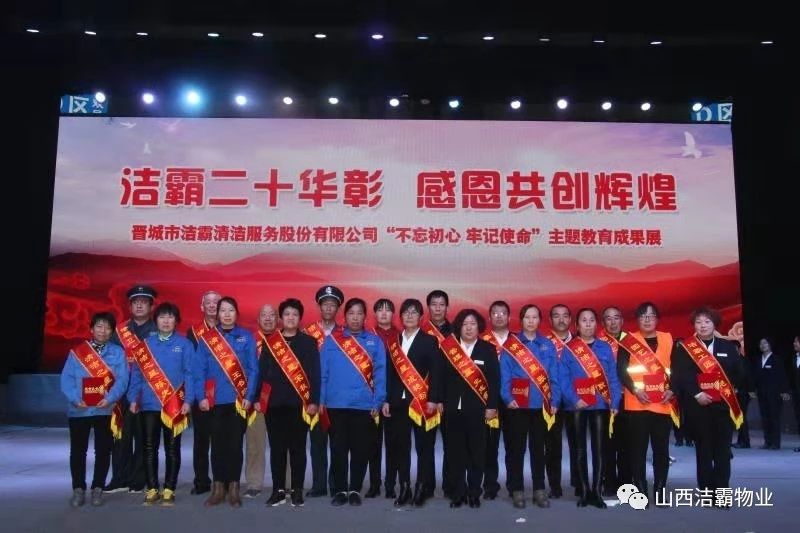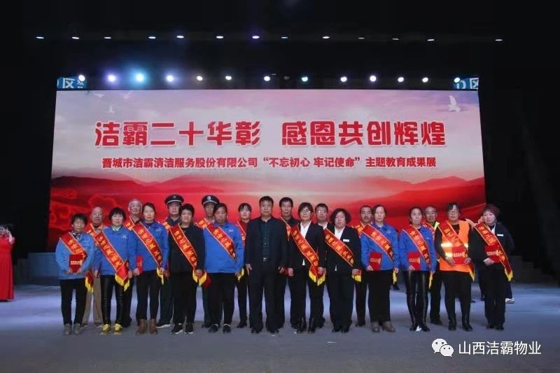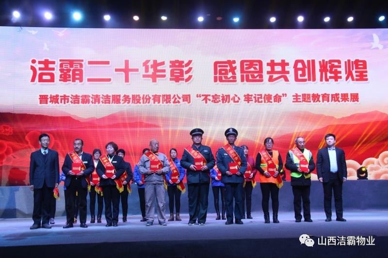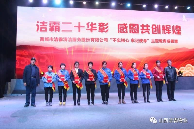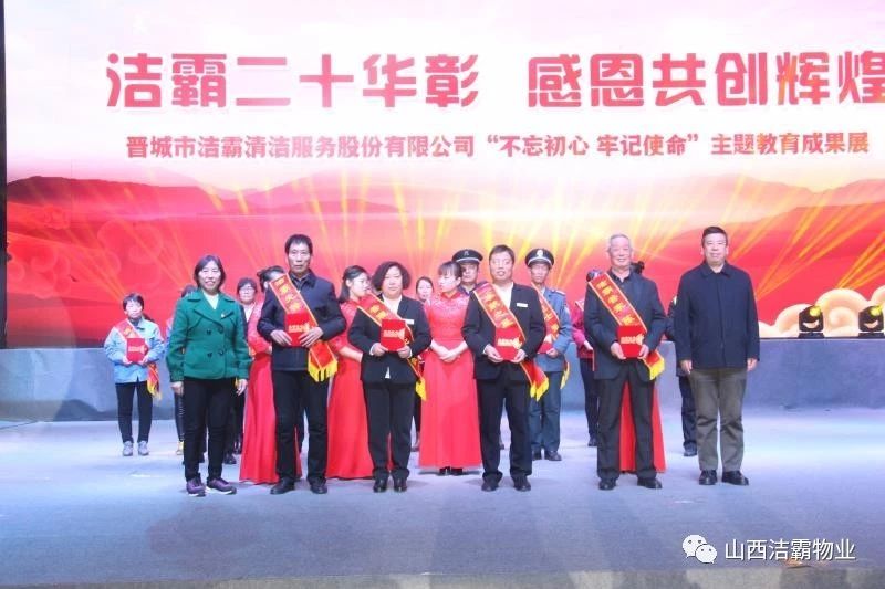 本次晚會(huì)以“潔霸二十華彰,感恩共創(chuàng)輝煌”為主題,此次慶典的核心思想是“感恩”,主要角色是潔霸的創(chuàng)業(yè)者。為此,公司對(duì)入職潔霸的創(chuàng)業(yè)功勛和一線員工進(jìn)行了表彰獎(jiǎng)勵(lì)。本次晚會(huì)共設(shè)8個(gè)獎(jiǎng)項(xiàng),包括“潔霸先鋒”“奉獻(xiàn)之星”“管理之星”“潔霸管家”“潔霸工匠”“清潔之星”“潔霸衛(wèi)士”“園藝之星”等。他們是:李山虎、張永智、史志霞、陳福林、王紅軍、余艷青、劉二丑、成艷粉、楊改梅、王書玲、張國(guó)榮、耿竹青、張粉霞、宋秋苗、陳先梅、張晉平、張偉山、趙瑞軍、王廣平、郭志云。晉城市原副市長(zhǎng)成育廷、晉城市商務(wù)局原局長(zhǎng)王新善、晉城市非公和社會(huì)組織工委書記郎軍芳、晉城市婦聯(lián)三級(jí)調(diào)研員李蓮菊、晉城市總工會(huì)商貿(mào)輕紡煙草服務(wù)業(yè)工會(huì)主席張玉濤、晉城市城區(qū)財(cái)政局局長(zhǎng)翟明太等領(lǐng)導(dǎo)為他們頒獎(jiǎng)。