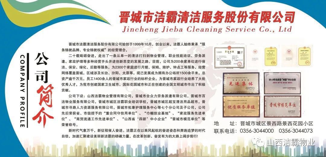 20年砥礪奮進(jìn),從一個租賃兩間辦公室名不見經(jīng)傳的小公司,成長為擁有擁有辦公場所1500余平米,總資產(chǎn)逾千萬元,員工1500余人的晉城市家政行業(yè)的標(biāo)桿企業(yè),潔霸完成了精彩跨越,“做清潔行業(yè)的霸主”的發(fā)展定位從未改變。