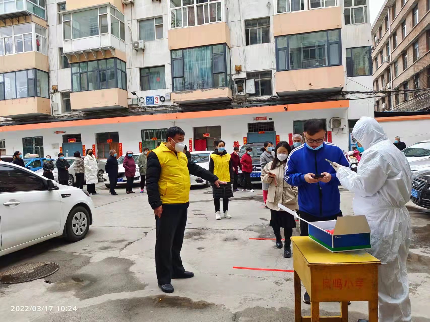 市三建小區(qū)是百潔物業(yè)去年接手的老舊小區(qū)之一。核酸檢測(cè)活動(dòng)現(xiàn)場(chǎng),他們身著志愿者馬甲,負(fù)責(zé)維護(hù)現(xiàn)場(chǎng)秩序,提醒居民排隊(duì)時(shí)嚴(yán)格遵循“一米線”,同時(shí)積極協(xié)助小區(qū)居民進(jìn)行信息登記等各項(xiàng)工作。