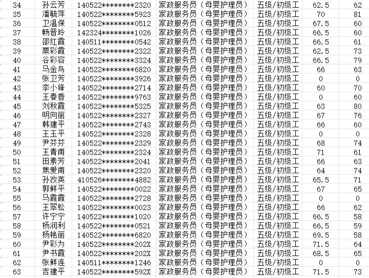 晉城市潔霸清潔服務(wù)股份有限公司 職業(yè)技能等級(jí)認(rèn)定中心 認(rèn)定人員成績(jī)公示