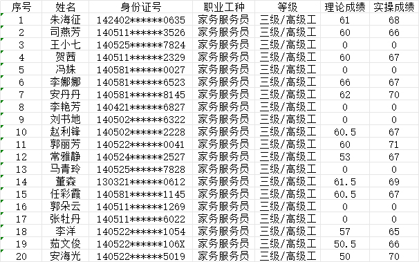 2024714日第6批家政服務(wù)員高級(jí)認(rèn)定人員成績(jī)公示